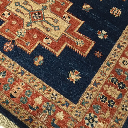 Teppich Afghan Turkmen Spezial Kazak Hochwertig Handgeknüpfte Orient Blau Terrakotta
