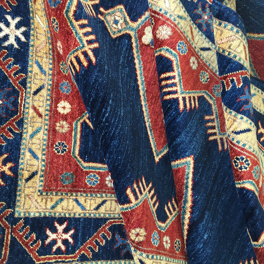 Teppich Afghan Spezial Kazak Turkmen Hochwertig Handgeknüpft Blau Rot