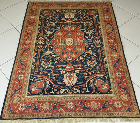 Teppich Alte Perser Täbris Mahi Handgeknüpft Rot Blau Gelb Mehrfarbig
