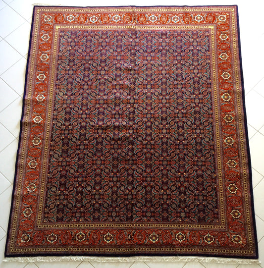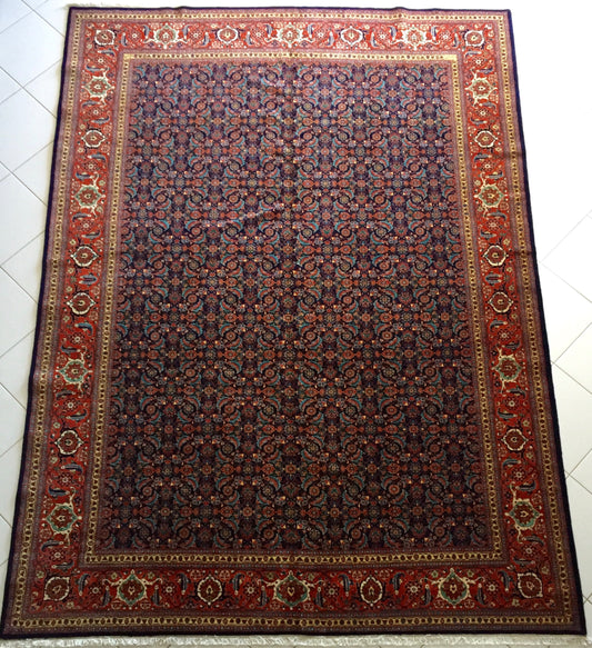 Teppich Alte Perser Tabriz Mahi Meisterstück Handgeknöpft Rot Blau