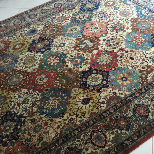 Teppich Perser Täbris Antike Meisterstück Handgeknüpfte Orient Tabriz Beige Mehrfarbig