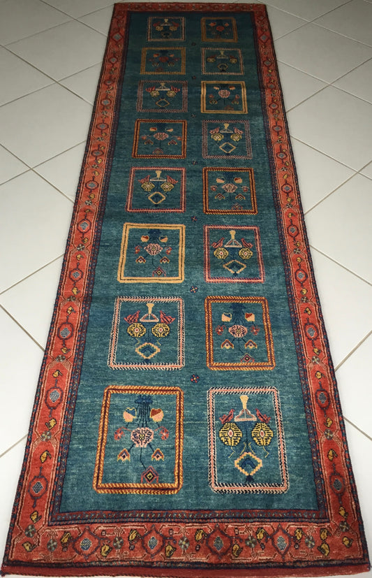 Teppich Läufer Perser Luribaft Türkis Blau Handgeknüpfte Orient
