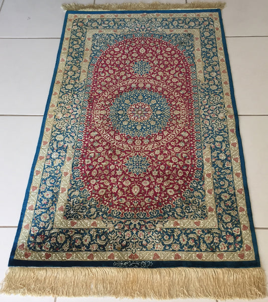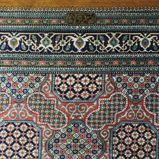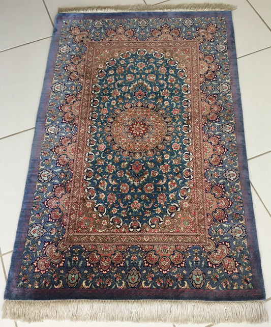 Teppich Perser Ghom Seide Handgeknüpfte Meisterstück Unikat Blau Mehrfarbig