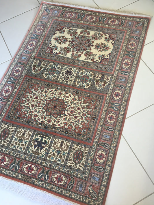 Teppich Perser Qom Seide Meisterarbeit Handgeknüpft Orient Ghom Beige Grün