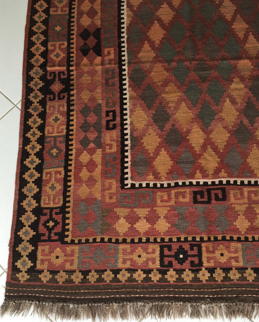 Teppich Kelim Afghan Uzbeki Nomaden Handgewebte Orient Rot Mehrfarbig