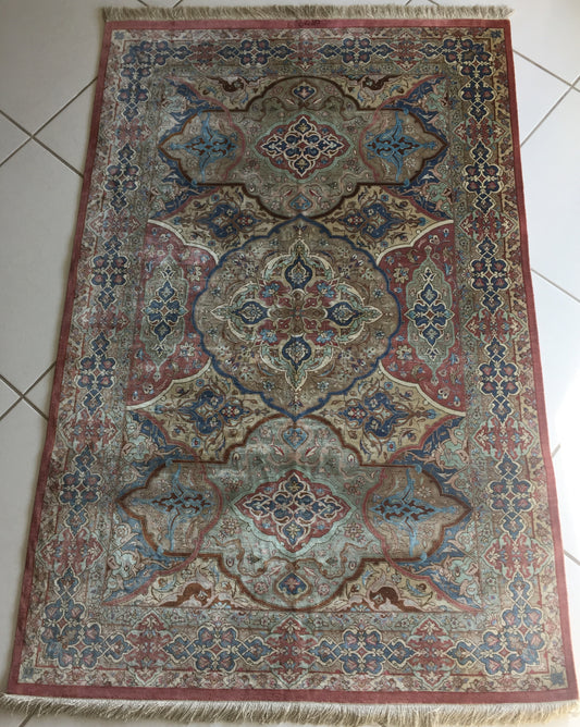 Teppich Perser Ghom Seide Unikat Meisterstück Handgeknüpfte Orientteppich Grün Rosa