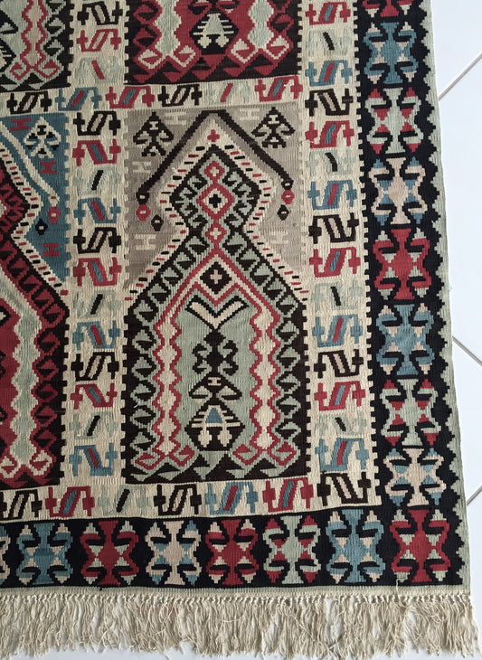 Teppich Türkisch Seide Kelim Oriental Anatolien Handgewebt Rot Blau Beige