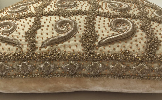 Anke Drechsel Kissen Haute Couture Champagne Metallic Bestickt Tussah Seide Seiden Samt