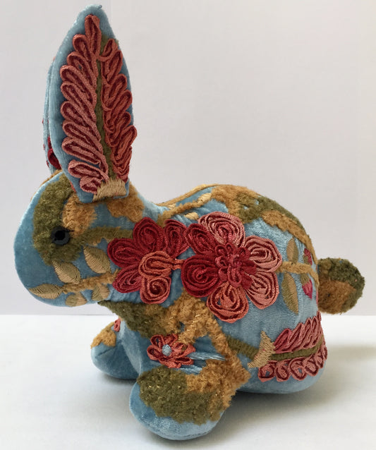 Anke Drechsel Hoffnung Hase Heavenly Blau Seiden Samt Bestickt