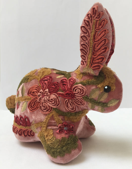 Anke Drechsel Hoffnung Hase New Rose Bestickt Seiden Samt Rosa