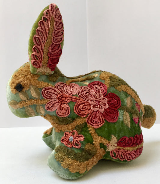 Anke Drechsel Hoffnung Hase Shaded Mint Bestickt Seiden Samt Grün