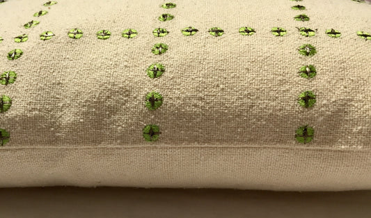 Anke Drechsel Kissen Creme Mint Bestickt Tussah Seide Beige Grün