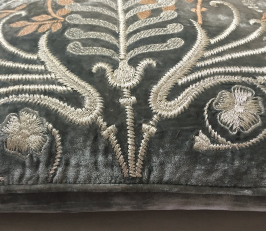 Anke Drechsel Kissen Haute Couture Floral Blue Bestickt Seiden Samt Blau Gold Beige