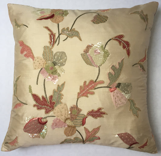 Anke Drechsel Kissen Haute Couture Floral Bestickt Naturseide Beige Grün Rosa