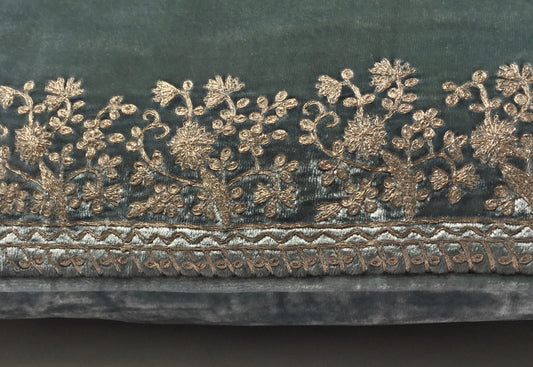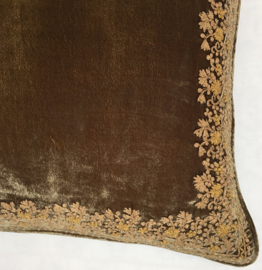 Anke Drechsel Kissen Haute Couture Taupe Bestickt Seiden Samt AntikGold