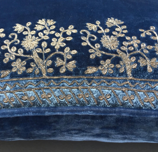 Anke Drechsel Kissen JAMILA FRAME Perfect Blau Gold Seiden Samt Bestickt