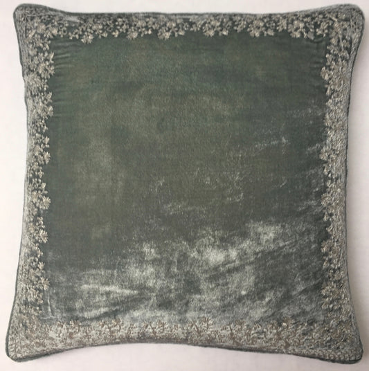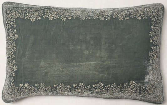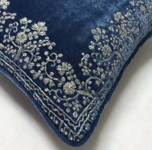 Anke Drechsel Kissen JAMILA FRAME Perfect Blau Silber Seiden Samt Bestickt