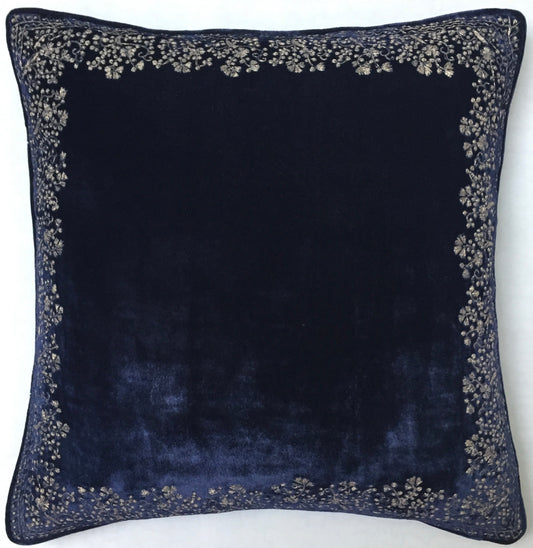 Anke Drechsel Kissen JAMILA FRAME Saphire Gold Seiden Samt Bestickt Dunkelblau