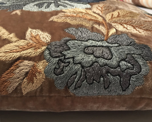 Anke Drechsel Kissen Haute Couture Taupe Rose Bestickt Seiden Samt Beige Blau