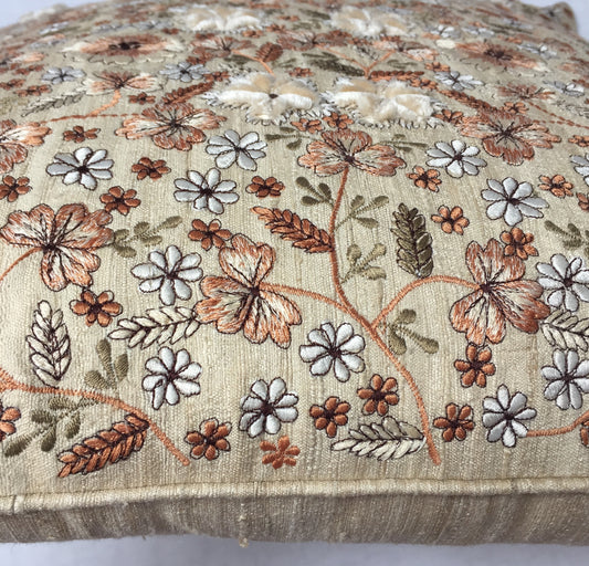 Anke Drechsel Kissen NATURAL Floral Beige Bestickt Naturseide