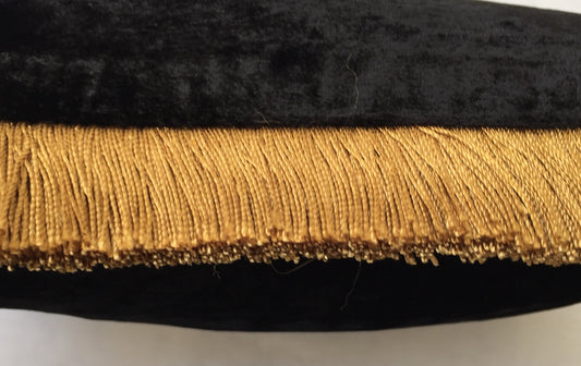 Anke Drechsel Kissen PLAIN Gold Franzen Schwarz Seiden Samt