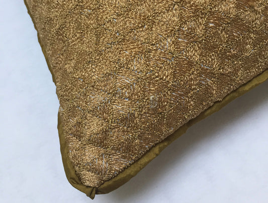 Anke Drechsel Kissen MONTAGNE Antik Gold Seiden Samt Bestickt