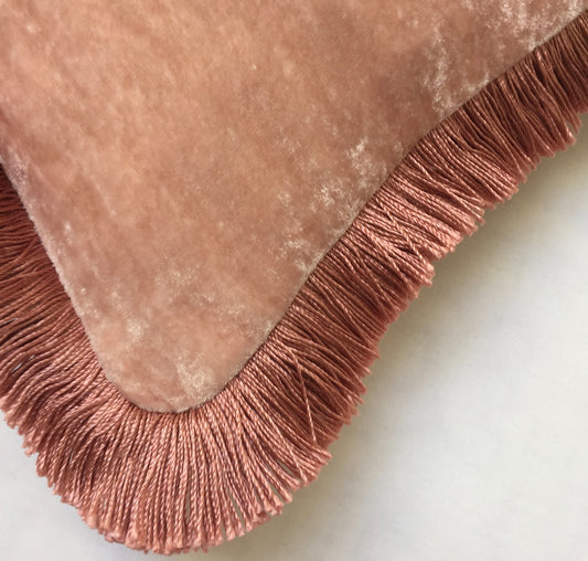 Anke Drechsel Kissen PLAIN Franzen Pink Quartz Seiden Samt Rosa