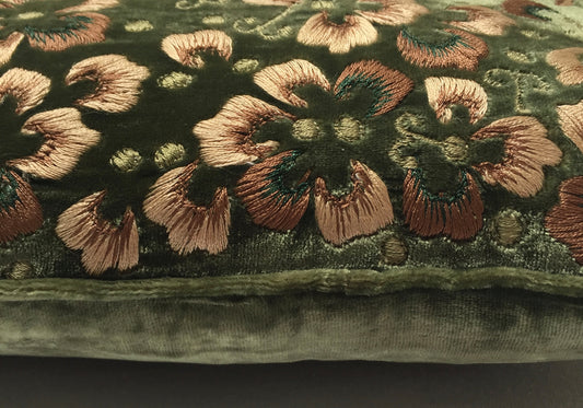 Anke Drechsel Kissen NELA Light Green Bestickt Seiden Samt Grün