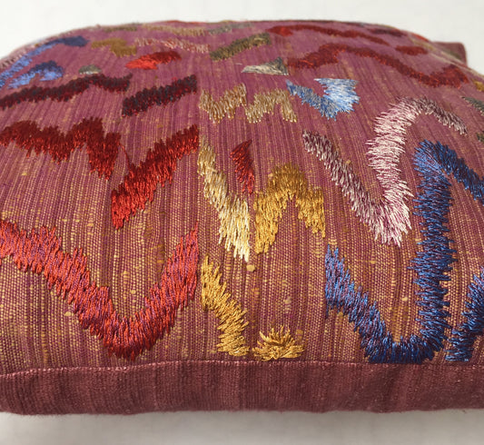 Anke Drechsel Kissen Natur Seide Bestickt Rot Rosa