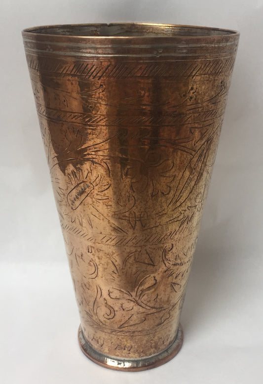 Antik Messing Becher Vase Wasserbecher Stiftbecher Gold Gravur Handarbeit