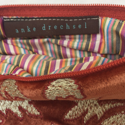 Anke Drechsel Zip Pouch Red Gold Bestickt Seiden Samt Kosmetiktasche Tasche Rot