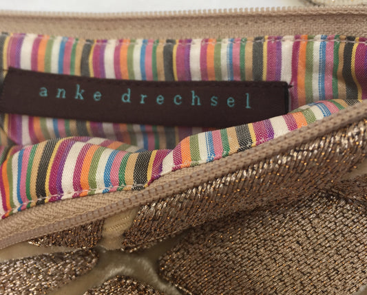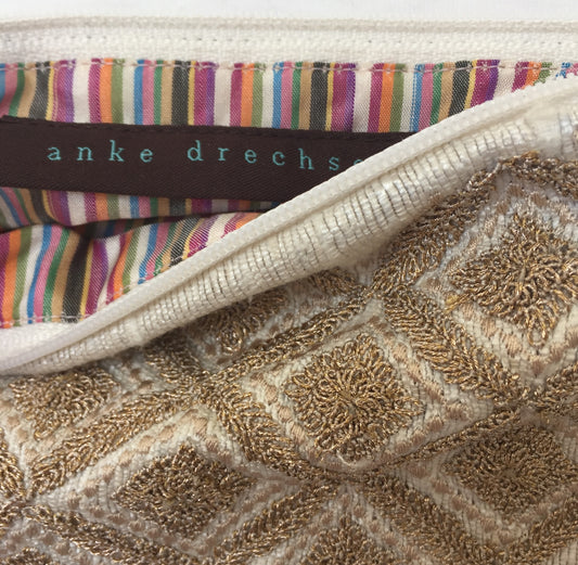 Anke Drechsel Zip Pouch Tussah Seide Gold Metallic Bestickt Kosmetik Tasche