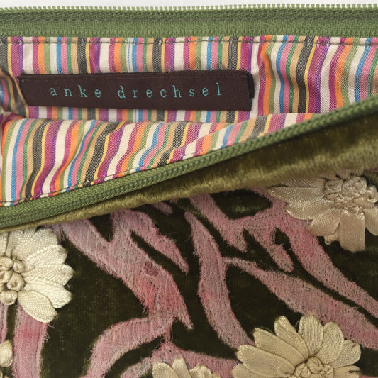 Anke Drechsel Zip Pouch Floral Light Green Bestickt Seiden Samt Grün