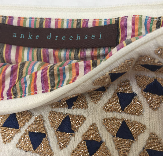 Anke Drechsel Zip Pouch Beige Gold Blue Bestickt Kosmetik Tasche Tussah Seide