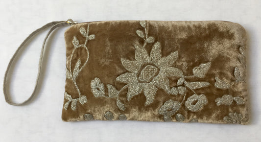 Anke Drechsel Zip Pouch Platinum Metallic Bestickt Seiden Samt Kosmetiktasche Tasche Beige Silber