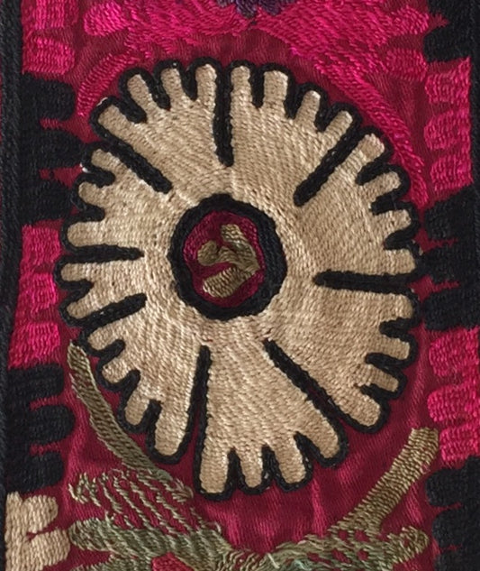 Antike Band Uzbek Suzani Embroidery Stickerei Seide auf Baumwolle Rot Mehrfarbig