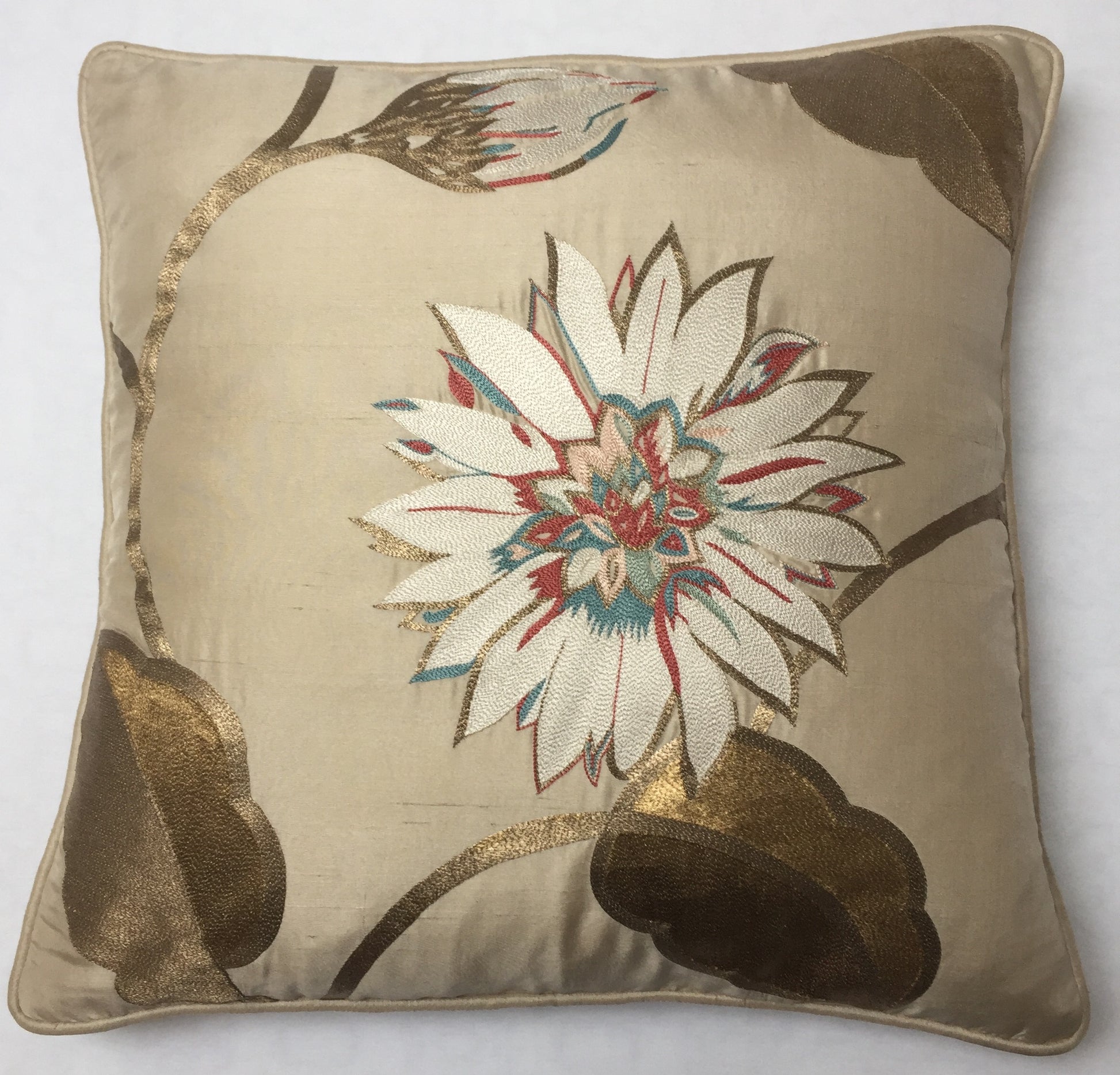 Exklusive Anke Drechsel Kissen Haute Couture Sure Crem Metallic Handbestickt Teil mit Metallisierte - Fäden und gehämmert 100% Naturseide