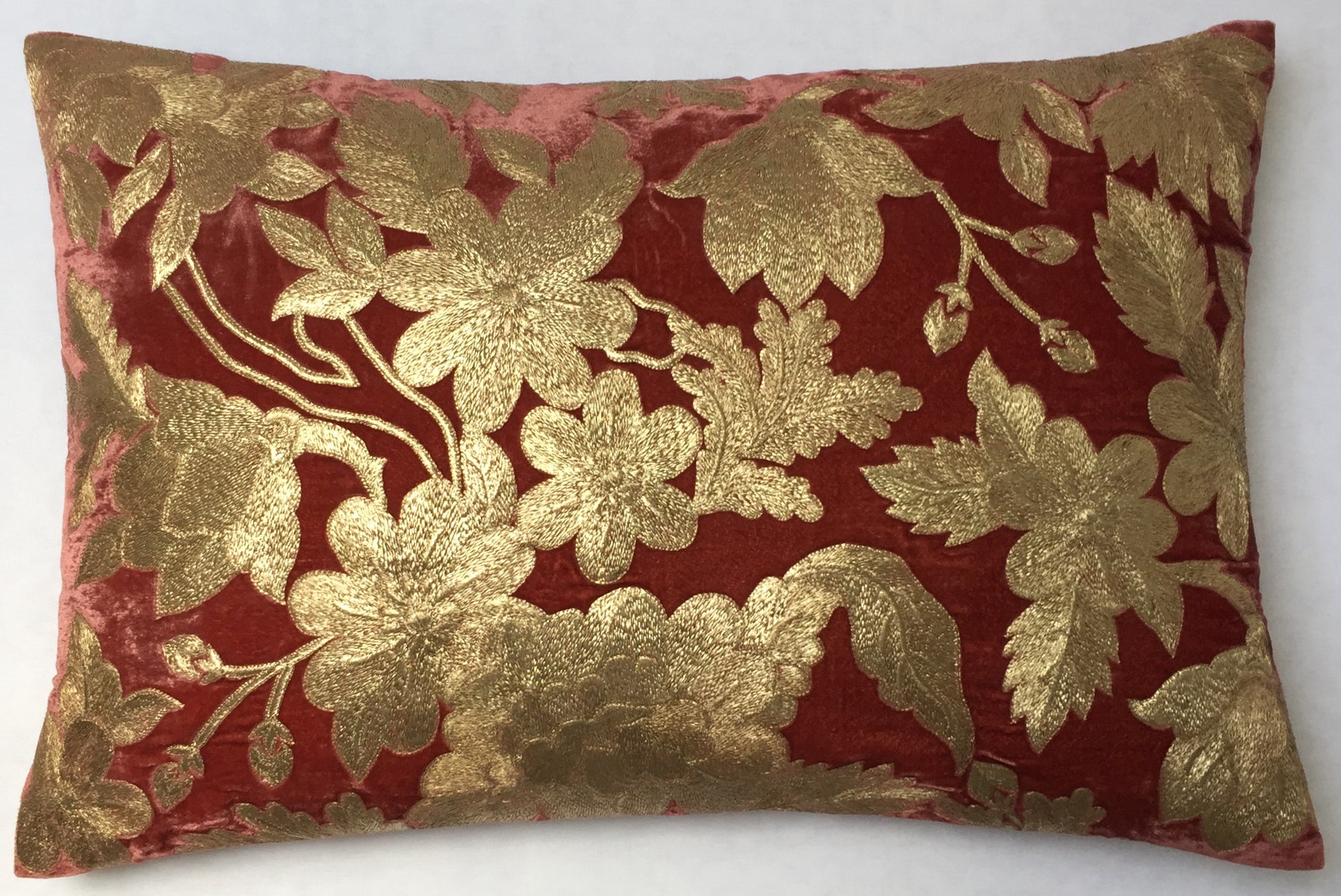Anke Drechsel Kissen Meisterstück OLIVIA Toscana Metallic Bestickt Seiden Samt Wine Rot