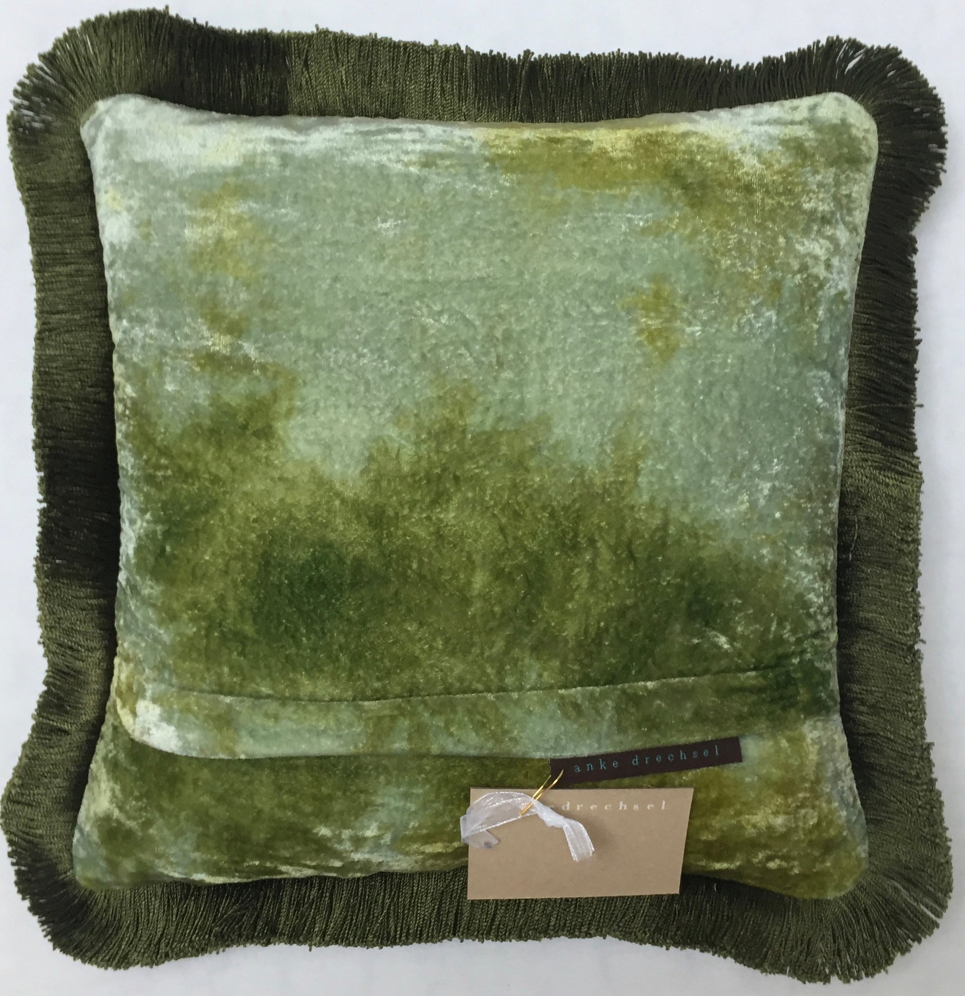 Exklusive Designer Anke Drechsel Kissen PLAIN Grün Franzen Shaded Mint 100% Seiden Samt