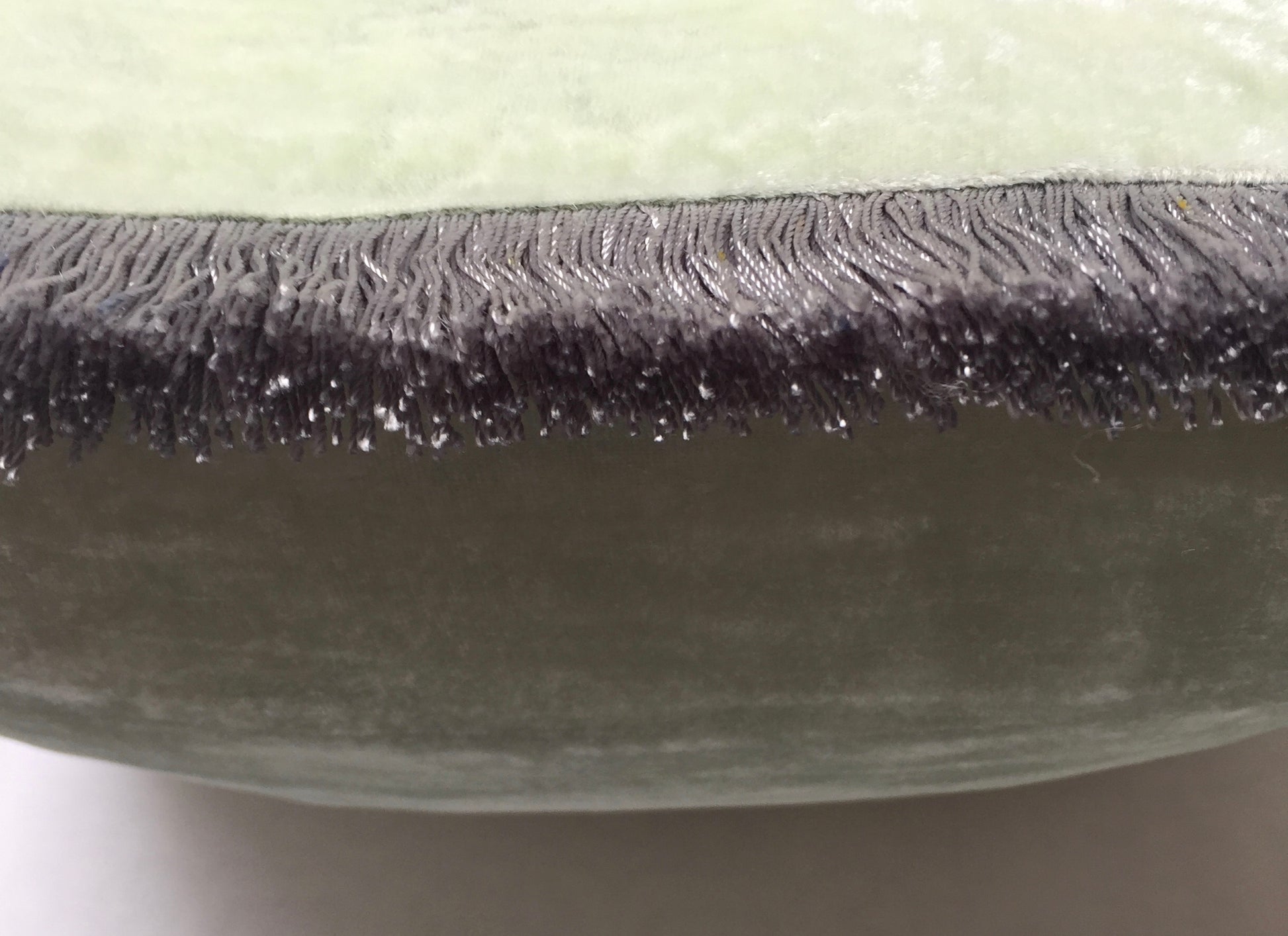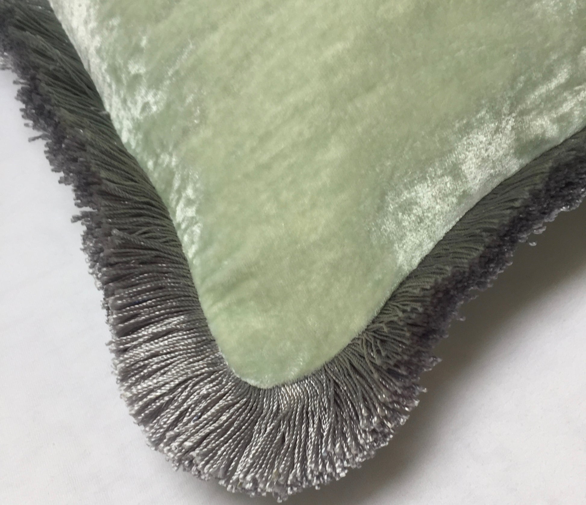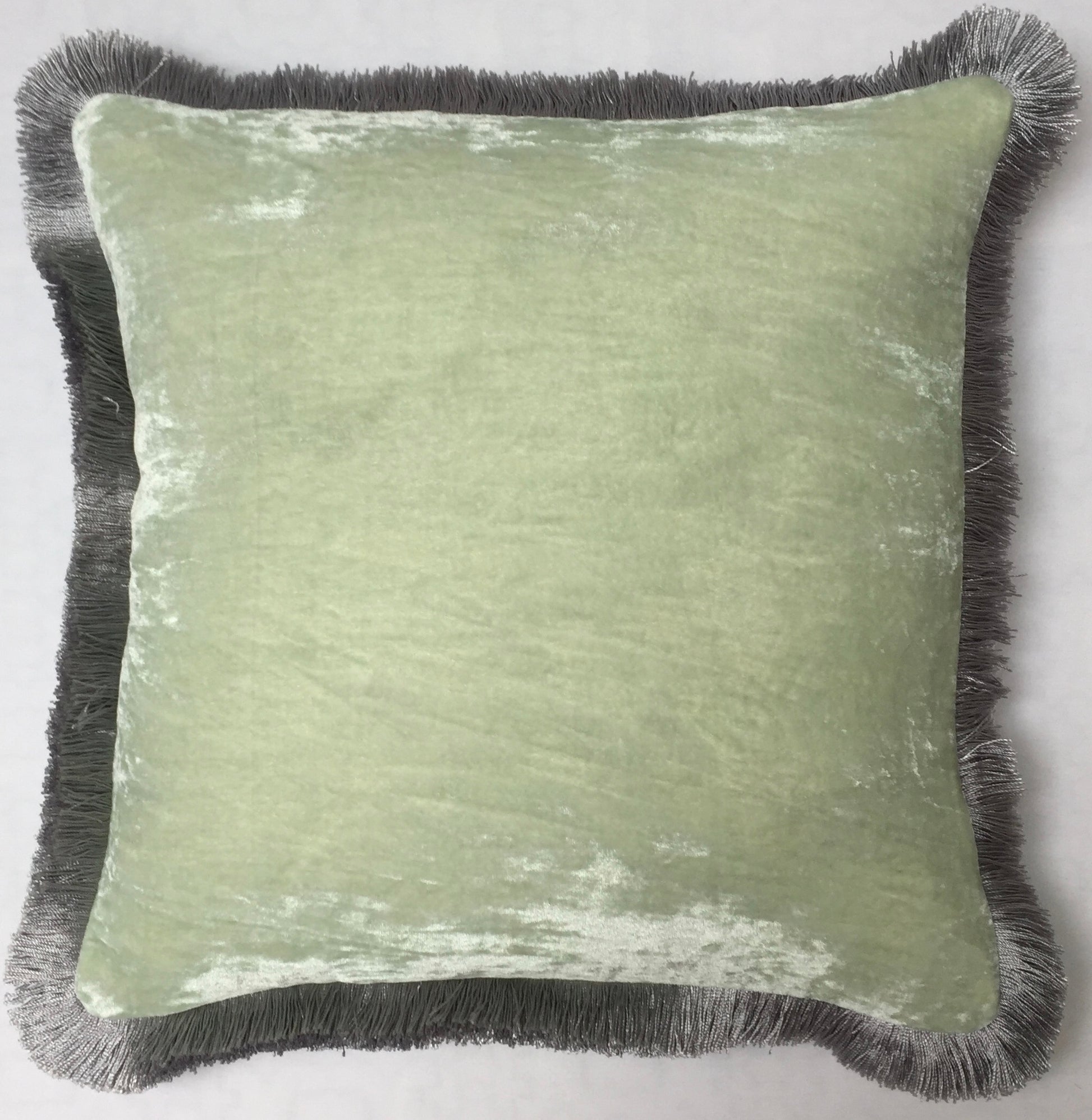 Anke Drechsel Kissen PLAIN Silber Franzen Sky Light Seiden Samt Mint Grün