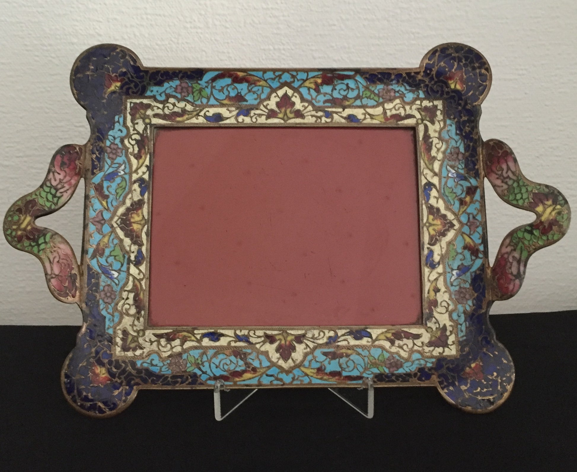 Exklusive Sammlerstück Besondere wohl Antike Platte,Tablet, Bilderrahmen Cloisonne Handarbeit, 20.Jahrhundert, wohl Frankreich.