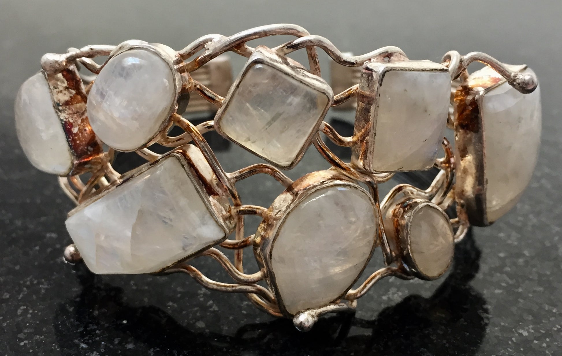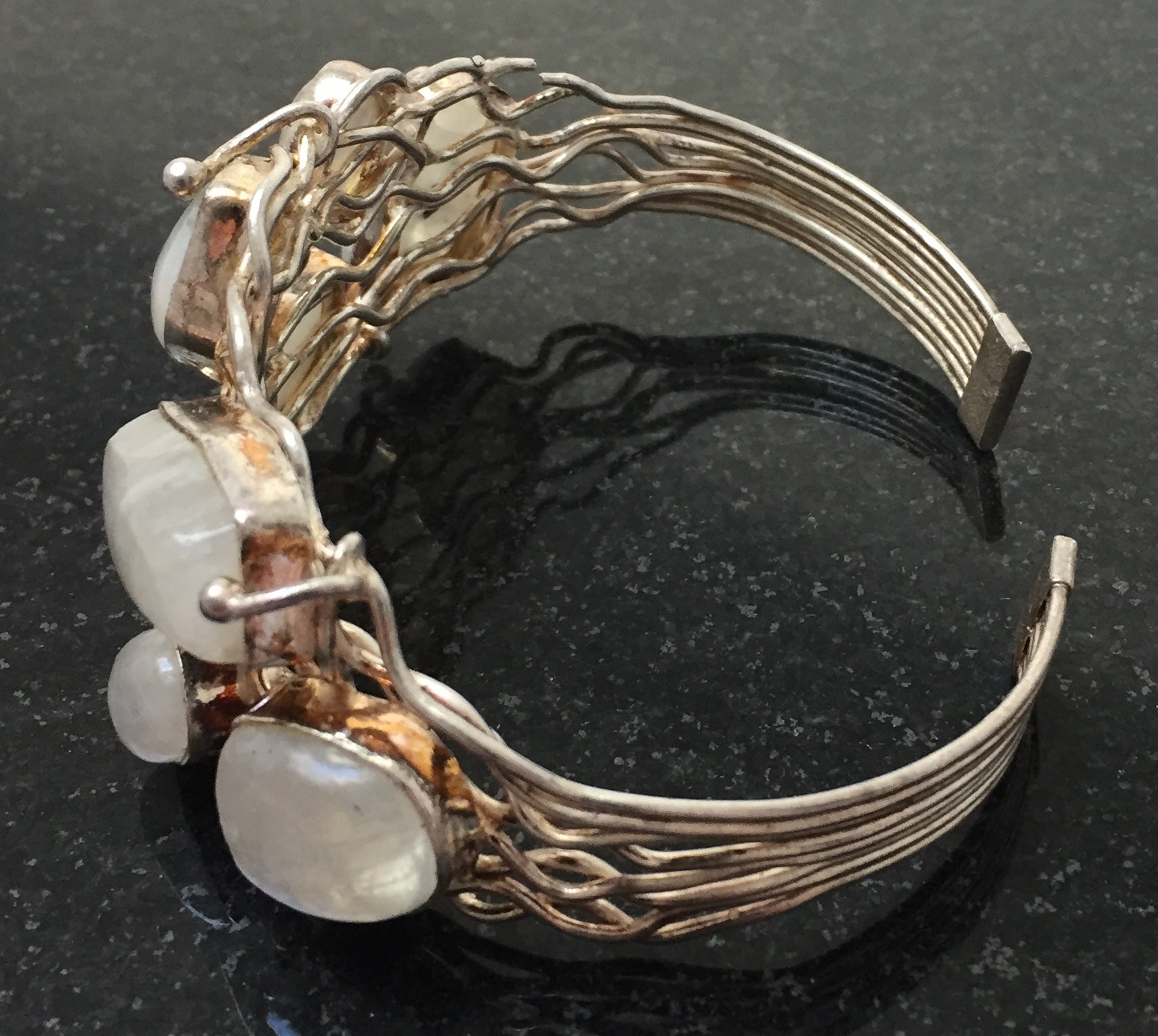Alte Wunderschöne Silber vergoldet Armreif mit Mondsteine.