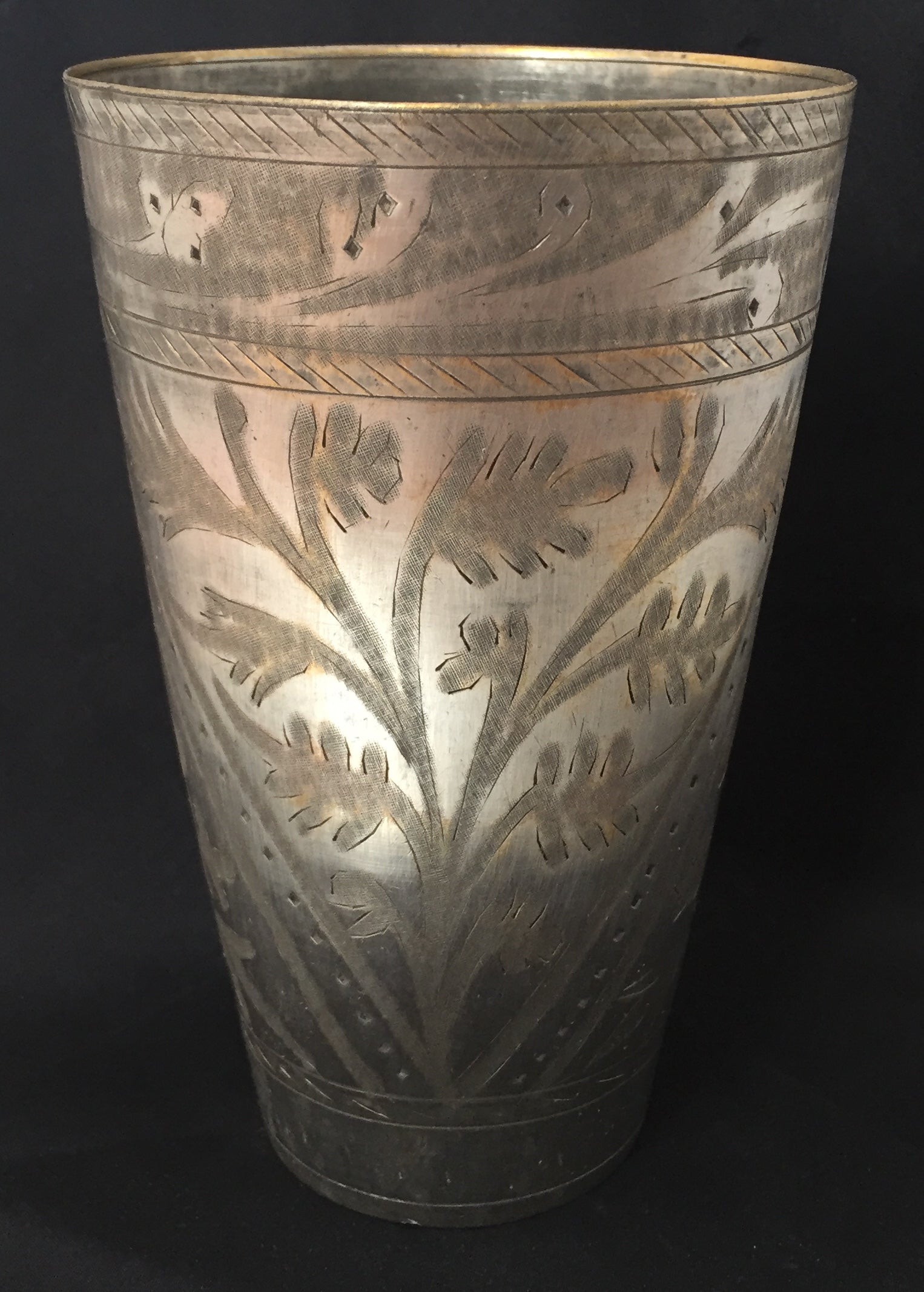 Becher Alte Messing Vase Sammler Vintage Gravur Handarbeit Silber