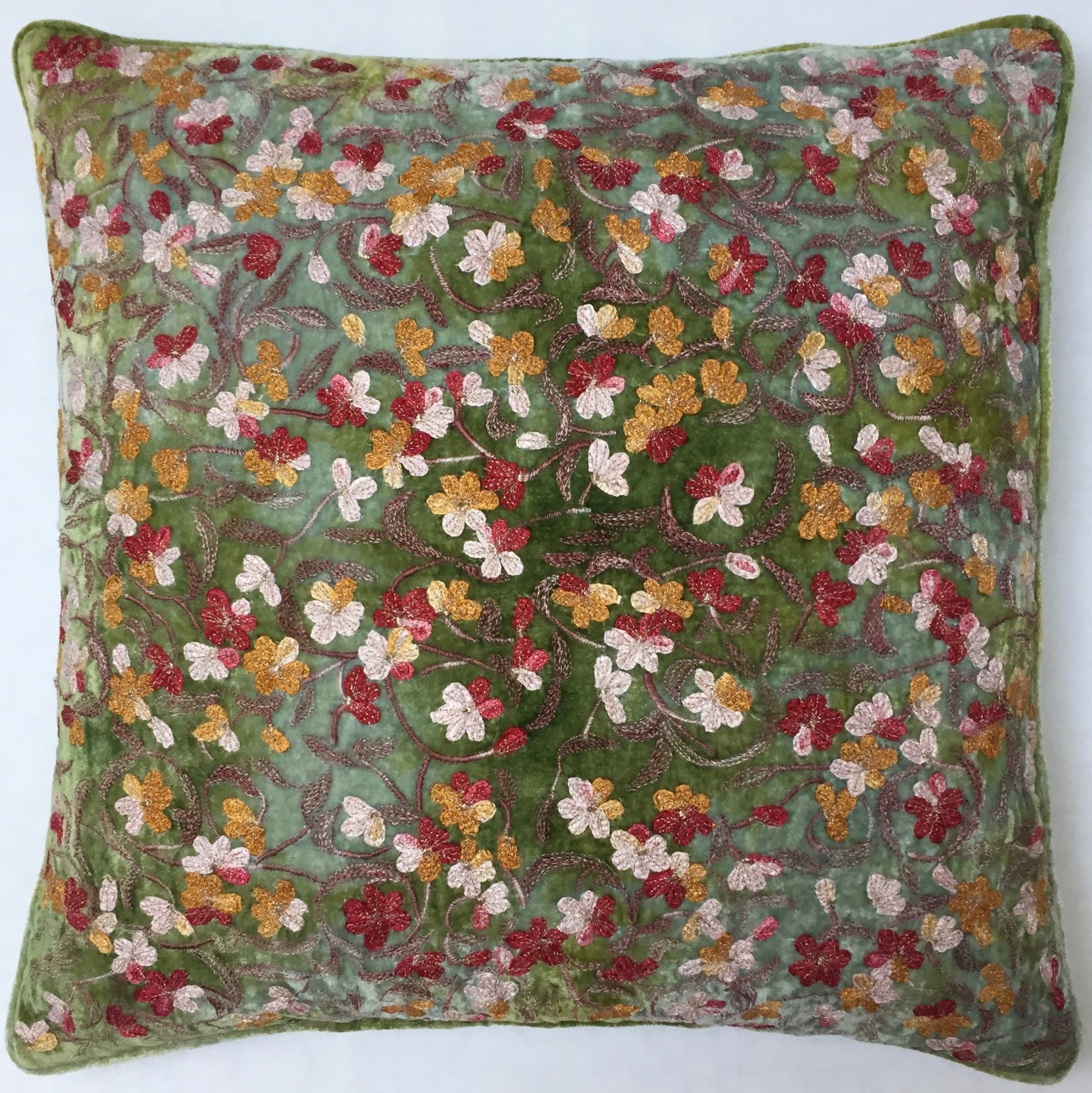 Anke Drechsel Kissen RAYMON Shaded Mint Metallic Bestickt Silk Velvet Grün