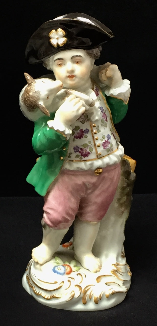 Sammlerstück Meissen Porzellan Figur Schäfer mit Lamm, Modell Acier 1. Wahl